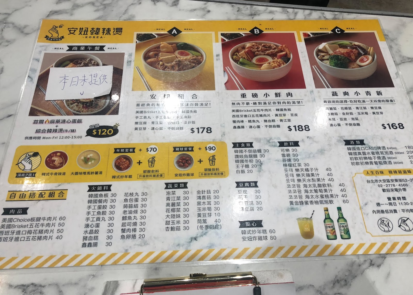 另外選完湯頭跟abc 還有 +$70 (辣炒年糕+30元飲料)或是 +$90 (辣雞球+30元飲料)可以升級